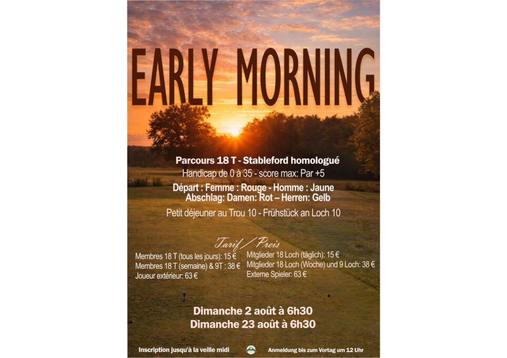 Inscriptions : Au club-house ou par téléphone au 03 88 05 77 00